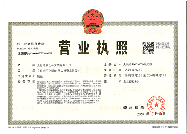 上海通強設備安裝有限公司注冊資金2000萬元,資產總量為100000萬元的專業設備安裝公司,公司專業從事工業與民用建筑的設備安裝、非標設備的制作、鋼結構制作安裝、中央空調系統的安裝,水電及管道的安裝。經過20多年艱苦創(chuàng)業現已成為一個具有國家二級安裝資質,獲得上海市“重合同,守信用”的施工單位。